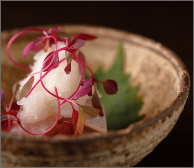 私たちの料理は、季節の旬の食材を取り入れ、独自のアレンジで仕上げます。素材そのものの味を活かしつつ、一手間加えた料理は、旬の味覚を存分にお楽しみいただけます。また、地元の漁師や農家から直接仕入れた新鮮な食材を使用するため、安心・安全な料理を提供します。一流の日本酒とのマリアージュで、五感を刺激する食の旅をお楽しみください。